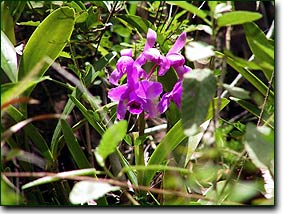 ![]() "Wild orchids abound on the hillside leading down to the Five Sister's Falls." |