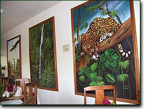 ![]() "Many original paintings grace the dining area as well as other areas of the lodge." |