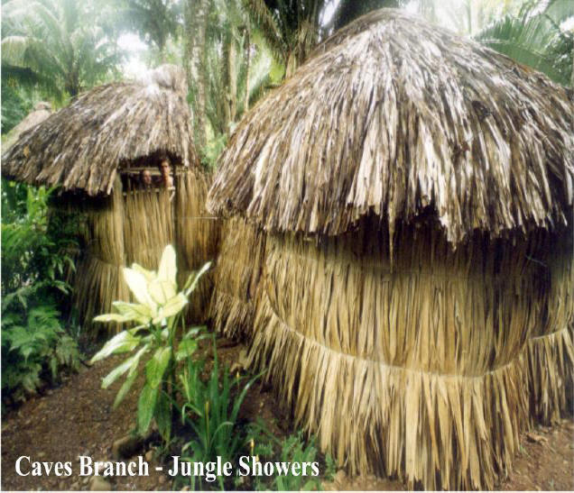 cabana. Leaf shrouded, HOT WATER Jungle Showers located outside the cabanas. |