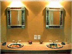 Each cabana is on the sand and measures 12ft by 24ft and offers queen-size bed with a view through the front picture windows of the beach. Each bed is draped with a pure linen mosquito net and pure cotton sheets. Floor rugs are from Guatemala, and assorted decorations from Belize and Mexico. The inside of the roof shows the hand thatched Palapa roof rising 18ft into the air. Bathrooms are spacious and airy, and offer a hand sink, toilet and circular shower, adorned with Mexican tiles and mirrors. The roof of the bathroom is also palapa and hangs over the bed giving a false roof and concealed lighting. The cabanas have a superb view of the sea and the sunrise and has a good size deck with deck chairs and hammocks over looking the beach. |