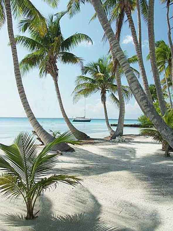 South Pacific type of Island with white sandy beaches lined with shady Coconut trees. The water colors are spectacular and the water is incredibly
