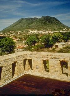 On Nov. 16, 1776 Statia was the first foreign land that recognized the new United States of America, though more by default than intention. A warship entered the habour of Statia firing a salute announcing American independence to the island. The island's inhabitants answered with a salute, unintentionally granting the new nation diplomatic recognition. As a result of this St. Eustatius was disavowed as a trading post by England and sank into a peaceful oblivion for a long time. Today 2.770 inhabitants with 20 different nationalities live on the the small island. They make a living from fishing, tourism and trade. After all the turbulence of the past Statia is now a friendly island where life is slow and quiet. Statians love to chat and also like to involve their guests in talks on anything and everything. Already upon arrival by plane the geological past of the island can be seen: St. Eustatius was born out of two volcanoes which are located on each side of the island. Oranjestad is the only town on the island. A cliff divides it into upper and lower parts connected through a winding and hilly street called Bay Road.